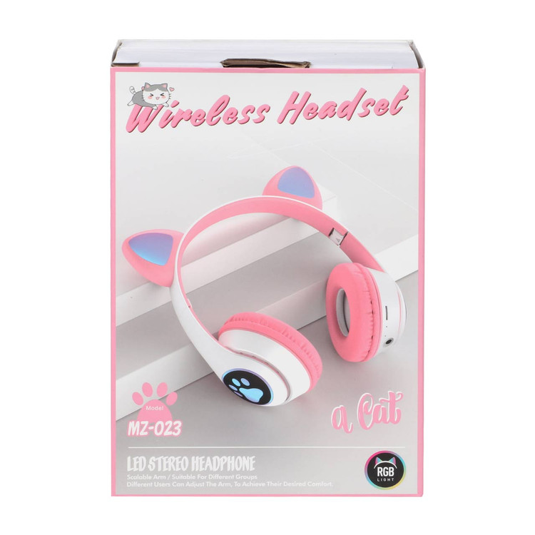 هدفون بلوتوثی گربه ای مدل MZ-023 با ترکیب طراحی فانتزی و جذاب، نورپردازی LED RGB، کیفیت صدای عالی، اتصال بلوتوثی پایدار و قابلیت های کاربردی مانند پشتیبانی از کارت حافظه و رادیو FM، انتخابی ایده آل برای بسیاری از کاربران است.